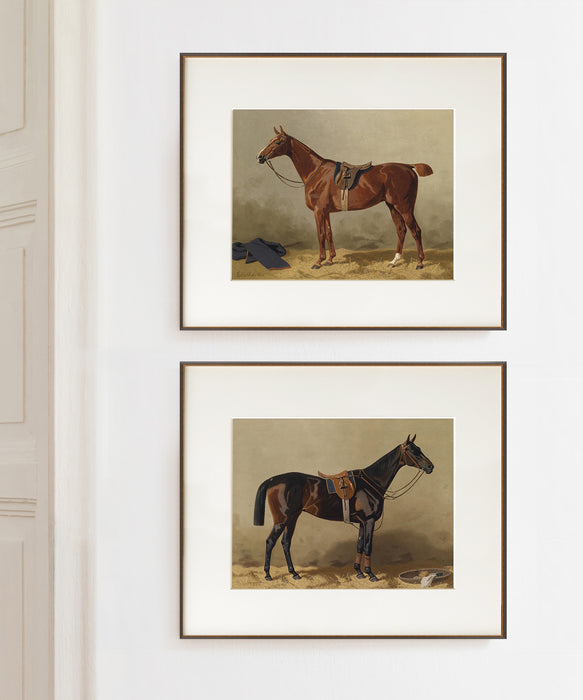 Featuring a chestnut and dark bay in classic, neutral tones. These prints work beautifully on their own or when hung as a pair.
