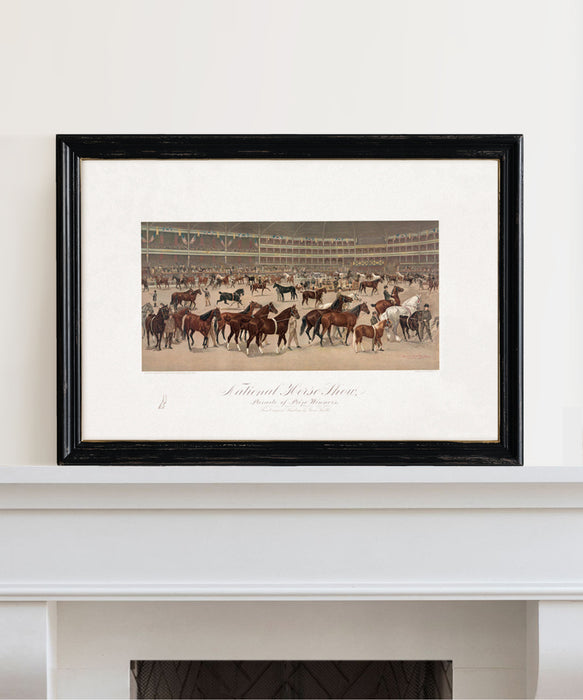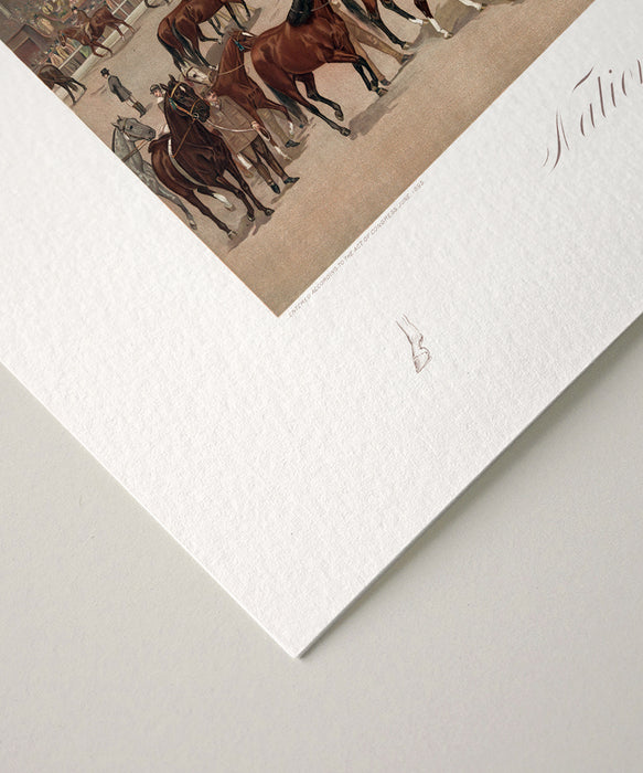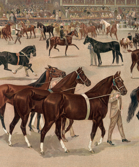 An incredibly detailed piece depicting 65 individual horses from the National Horse Show in 1895. Printed on 100% cotton stock using an archival giclée print process.
