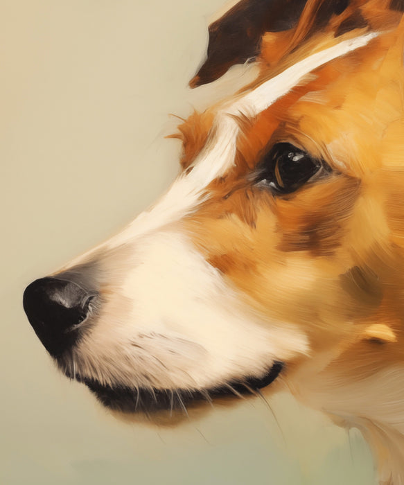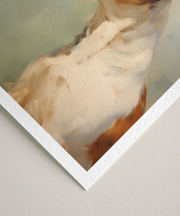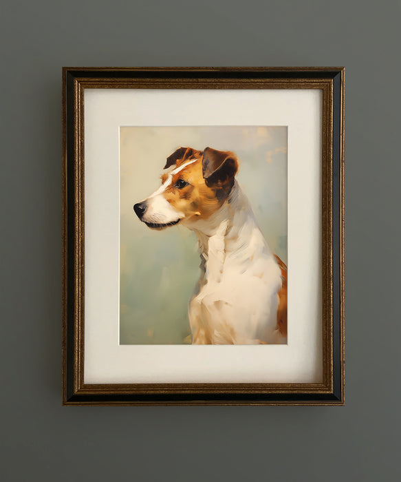 A museum-quality print capturing the bright and inquisitive nature of the Jack Russell breed. Beautiful detail, painterly brush strokes, and soft pastel tones add to the classic character of this piece. Printed on 100% cotton stock using an archival giclée print process.